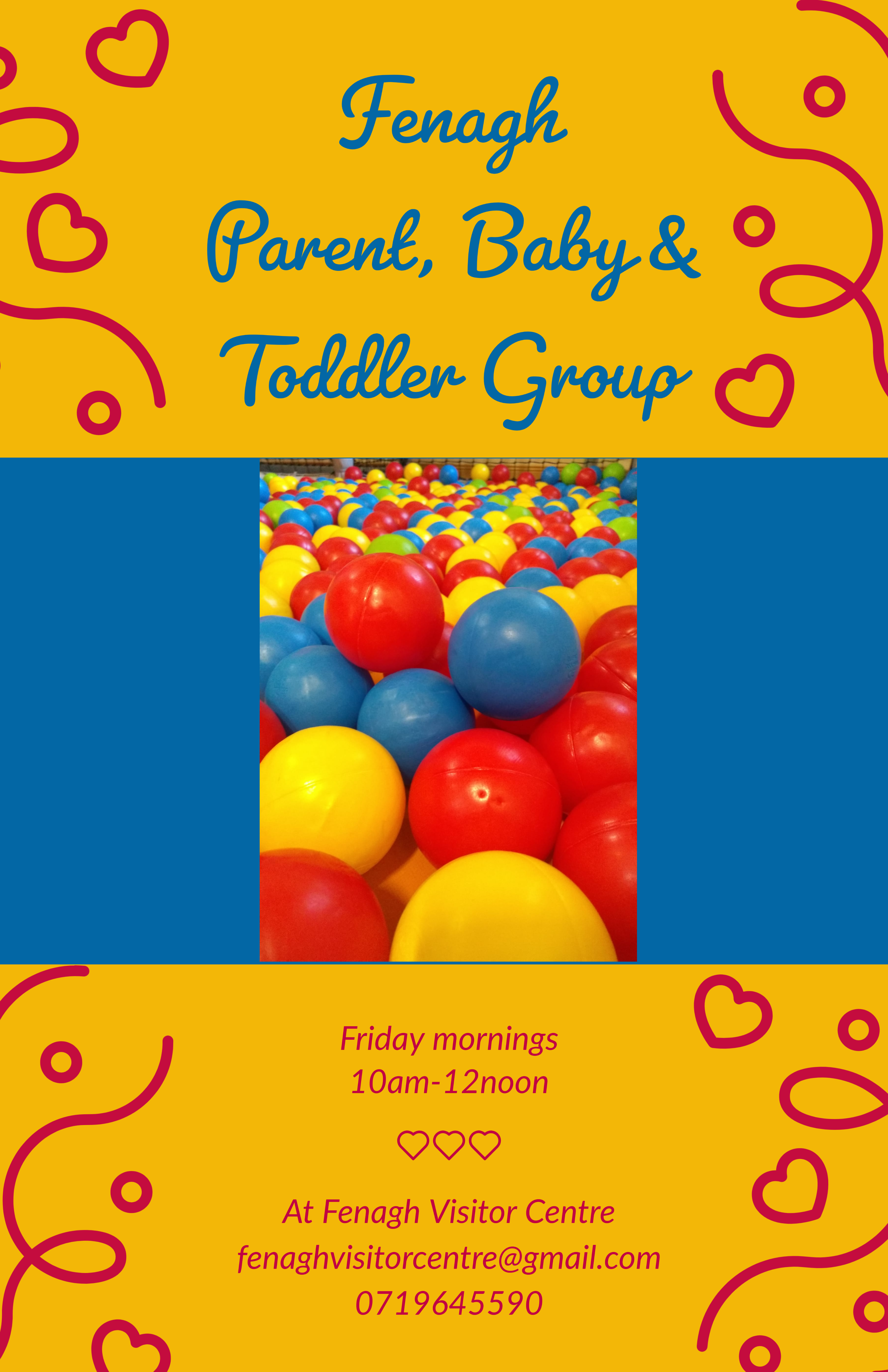 > Fridays from 10am-12noon – Parent, Baby & Toddler Group – Fenagh Visitor Centre. On Friday mornings, the Monk’s Den is given over to younger members of our community. No need to book. More details here.